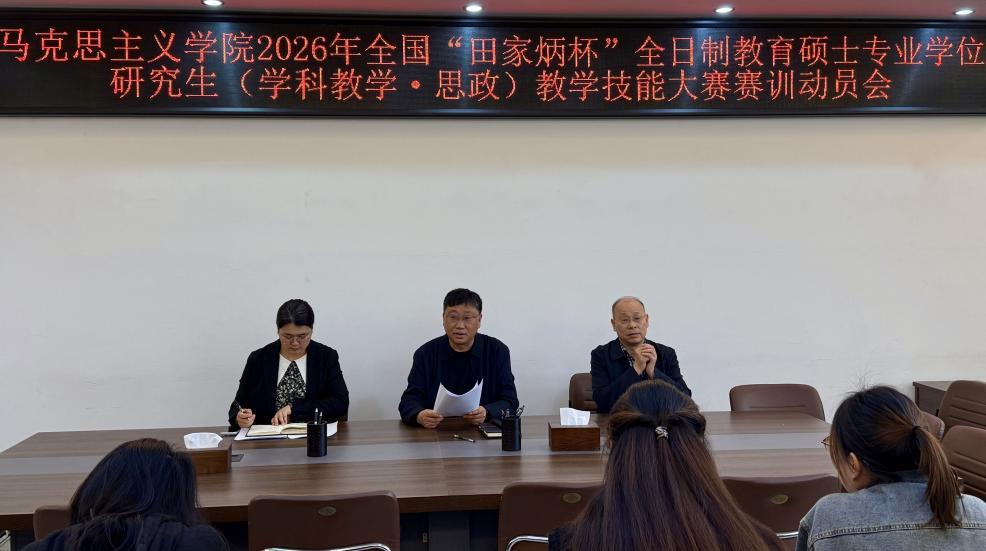 2026年4月7日,必赢76net线路官网在社科楼323会议室,召开2026年全国“田家炳杯”全日制教育硕士专业学位研究生(学科教学·思政)教学技能大赛赛训动员会。学院副院长程晋富、研究生班主任厉有国、研究生秘书吴梦云及全体参赛学生参加会议。
