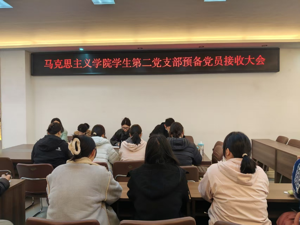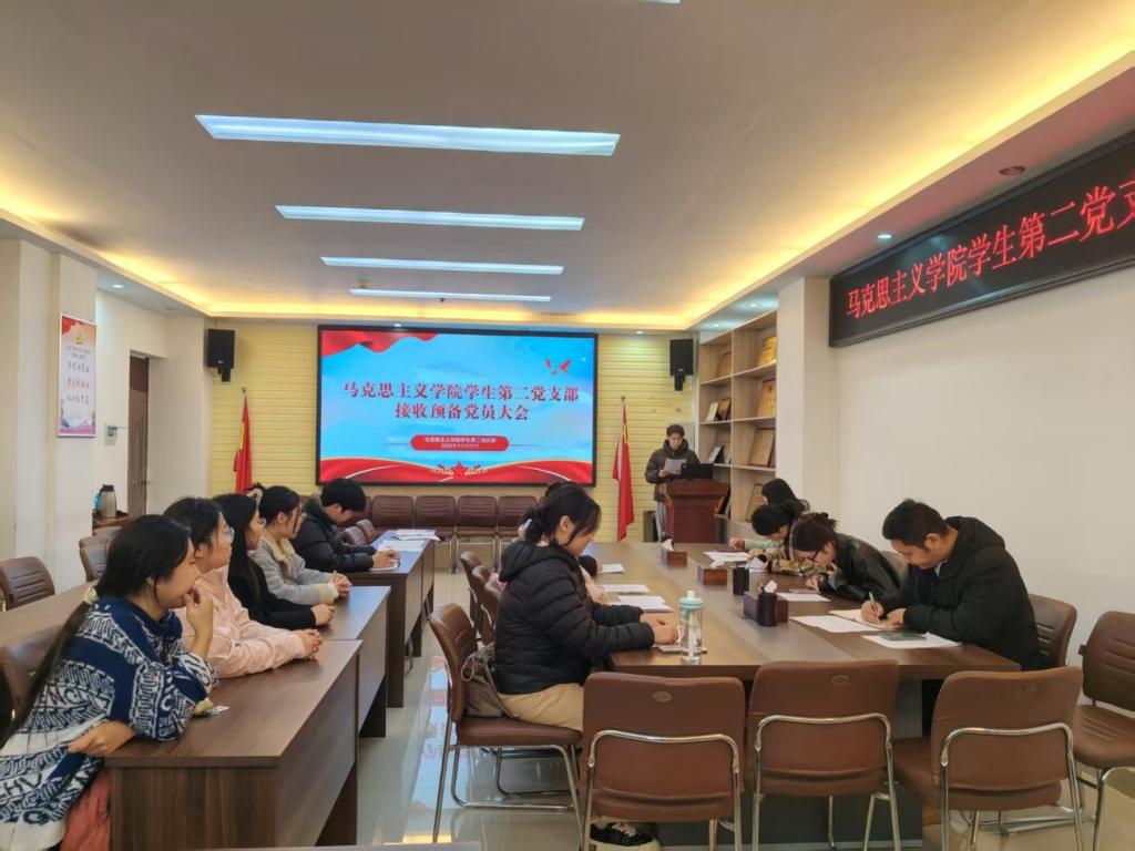 2025年11月17日下午,中共信阳师范大学必赢76net线路官网学生第二党支部委员会在社科楼323召开了2025年下半年接收预备党员支部大会。必赢官网学生第二党支部书记任婷,学生第二党支部全体党员、预备党员和党员发展对象共同参加此次会议。会议由任婷同志主持。