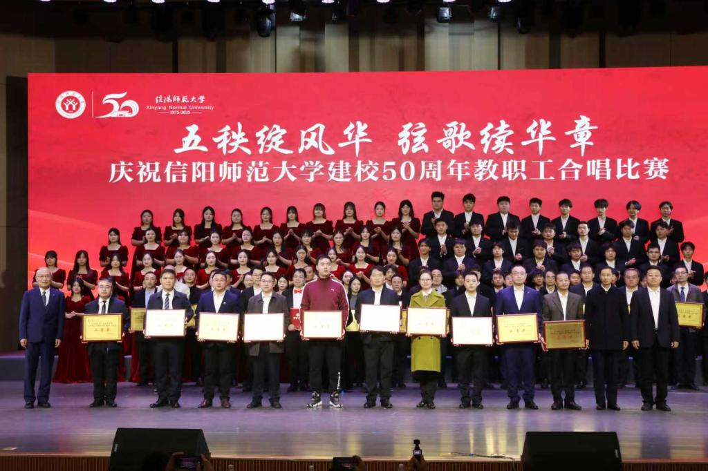 五秩绽风华,弦歌续华章。10月21日,庆祝信阳师范大学建校50周年教职工合唱比赛在艺术楼音乐厅圆满举行。全校29支教职工合唱队、共1500余名教职工满怀热忱,依次登台,以歌声礼赞祖国壮丽征程,同贺学校50周年华诞。必赢官网教职工合唱团凭借出色表现,荣获二等奖。