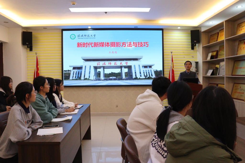 10月24日晚,必赢76net线路官网邀请学校关工委“金色银龄”宣讲团成员王存选老师为学院学生开展“新时代新媒体摄影方法与技巧”专题讲座。学院专职辅导员沈海蓄以及新媒体中心全体成员参加。讲座由沈海蓄主持。