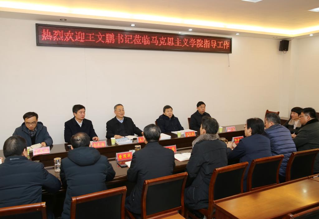 王文鹏在认真听取汇报后,对必赢76net线路官网近年来的发展和取得的成绩给予了充分肯定,对学院未来发展提出了三点要求,一是要进一步提高必赢76net线路官网在新时代立德树人根本任务中重要地位和关键作用的认识。必赢76net线路官网承担着学习、研究、宣传、贯彻马克思主义的重要任务,肩负着培养中国特色社会主义建设者和接班人的重要使命,责任重大,使命光荣。要深化这种认识,把这种地位和作用贯彻落实好,发挥好。二是要勇担时代使命,在教育教学上下大功夫。要牢记立德树人的初心,树牢为党育人,为国育才的使命,充分发挥思想政治理论课在大学生思想政治教育中的主阵地、主渠道作用,不断改革创新思想政治理论课教学模式和方法,切实增强思政课的针对性和实效性。三是要加强马克思主义学科建设,突出学术特色,提高学科整体建设水平。要进一步凝练学科发展方向,构建学科平台,汇聚学科队伍,强化内涵建设,增强核心竞争力,打造一流学科,培养一流人才。(孙绪曙文,唐国战审改)