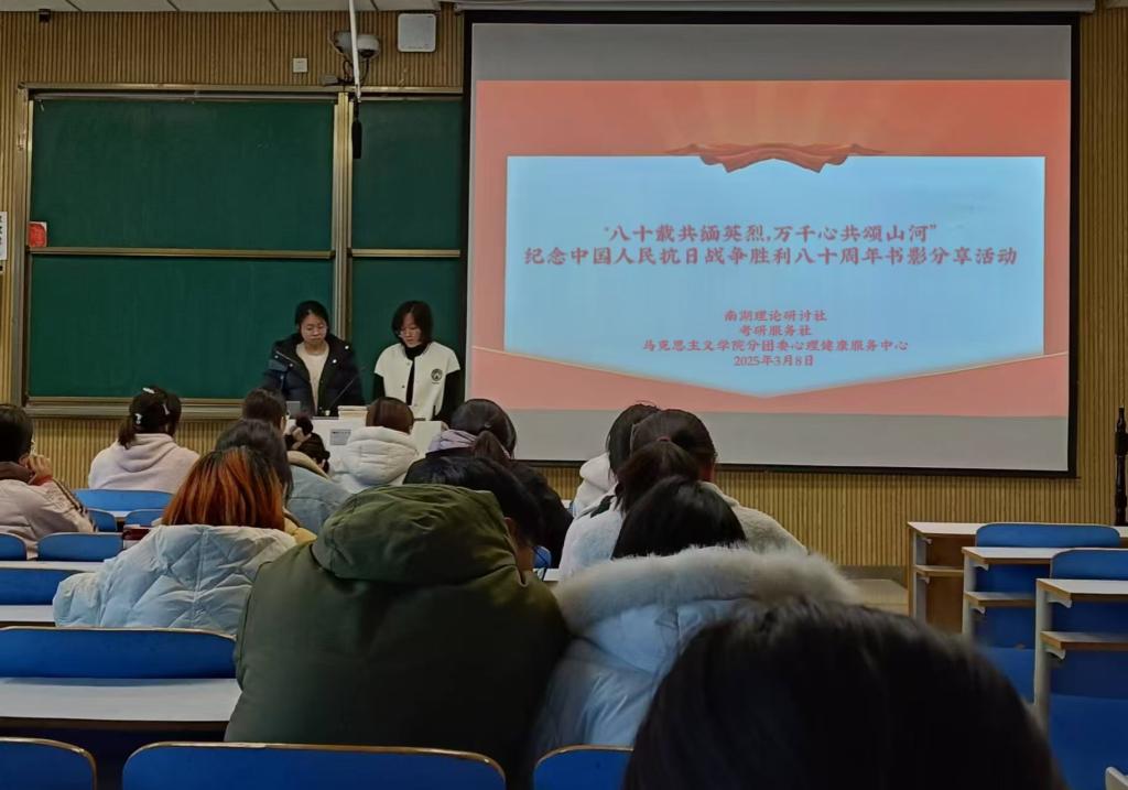 铭记历史光辉,缅怀英雄先烈。为加强爱国主义教育,提升当代大学生民族自豪感,激发学生爱国热情。3月8日,南湖理论研讨社携考研服务社、必赢76net线路官网分团委心理健康服务中心在社科楼515教室联合举办以“八十载共缅英烈,万千心同颂山河”为主题的书影分享活动。本次活动由心理健康服务中心负责人吴玉阳、付雨芳共同主持。
