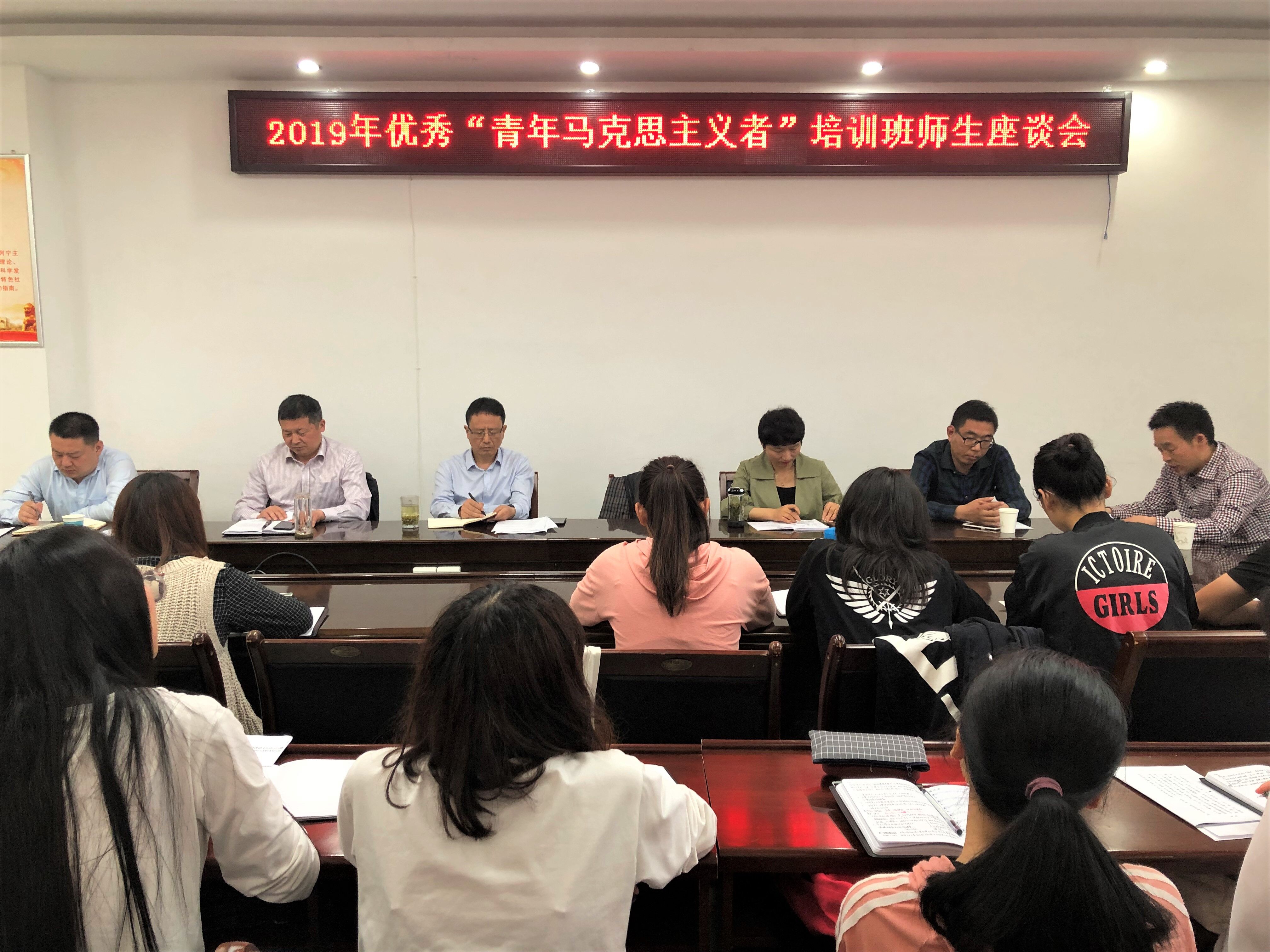 5月14日下午,必赢官网2019年优秀“青年马克思主义者”培养工程在社科楼323会议室召开了师生座谈会。必赢官网党委书记唐国战,党委副书记徐永新、何晓坚,老师代表李蕊、王帆宇、王建礼和全体辅导员、青马工程全体学员共同参加座谈会。会议由党委副书记何晓坚主持。