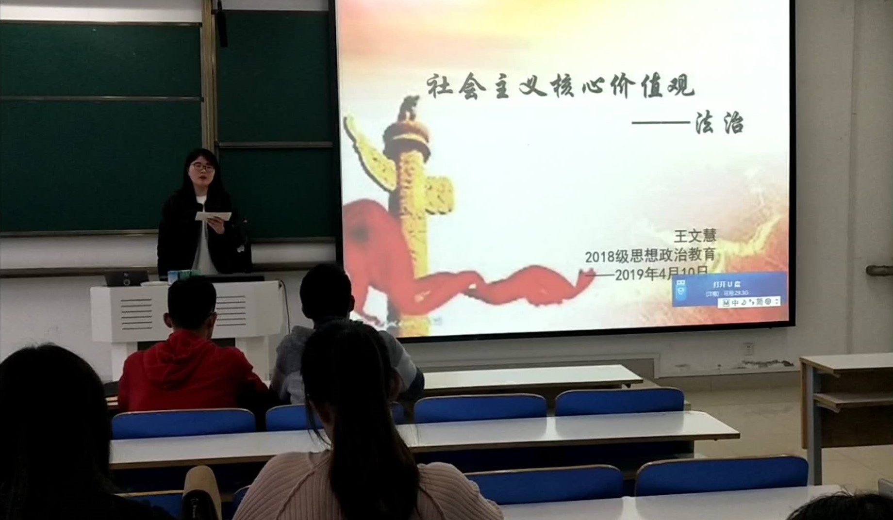 为了使同学们深刻理解社会主义核心价值观的内涵,4月10日下午,2018级思政二班在社科楼515教室成功举行社会主义核心价值观演讲比赛。必赢官网实践部、新闻部、心理健康部相关负责人和2018级思政二班班委担任此次评委,比赛由黄子晋主持。
