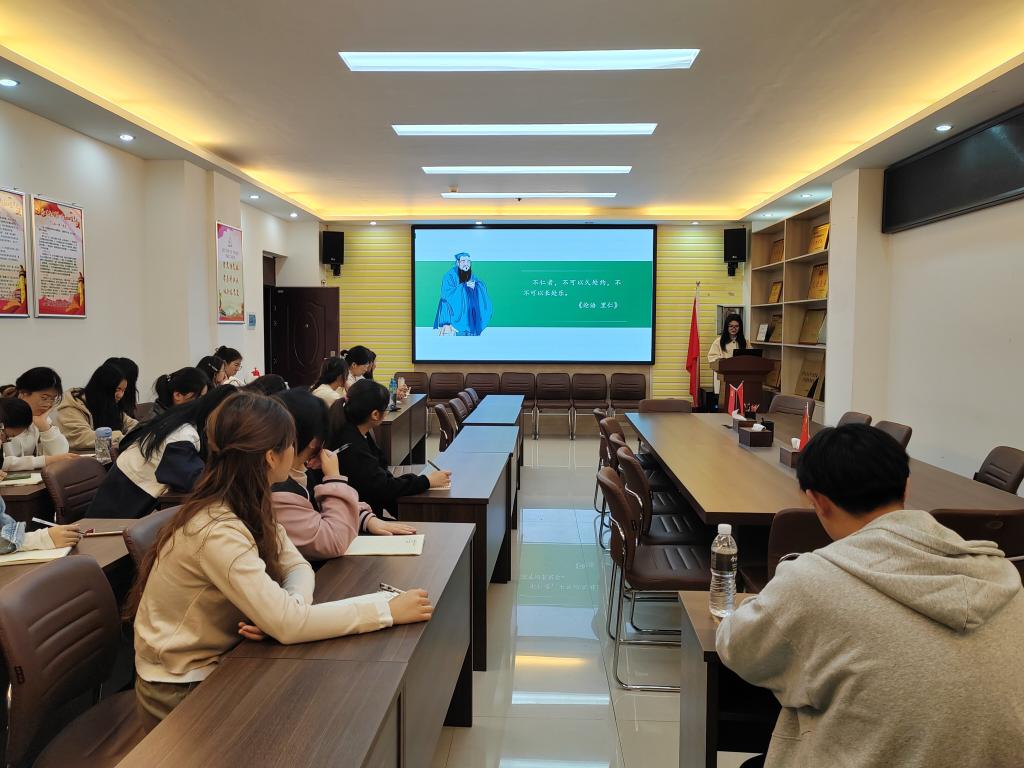 3月22日晚上,应必赢76net线路官网“青年马克思主义者”培训工程领导小组的邀请,袁聪丽老师在社科楼323会议室以“中国传统哲学思想与青年人生观塑造”为主题为必赢官网“青马”全体学员进行授课。
