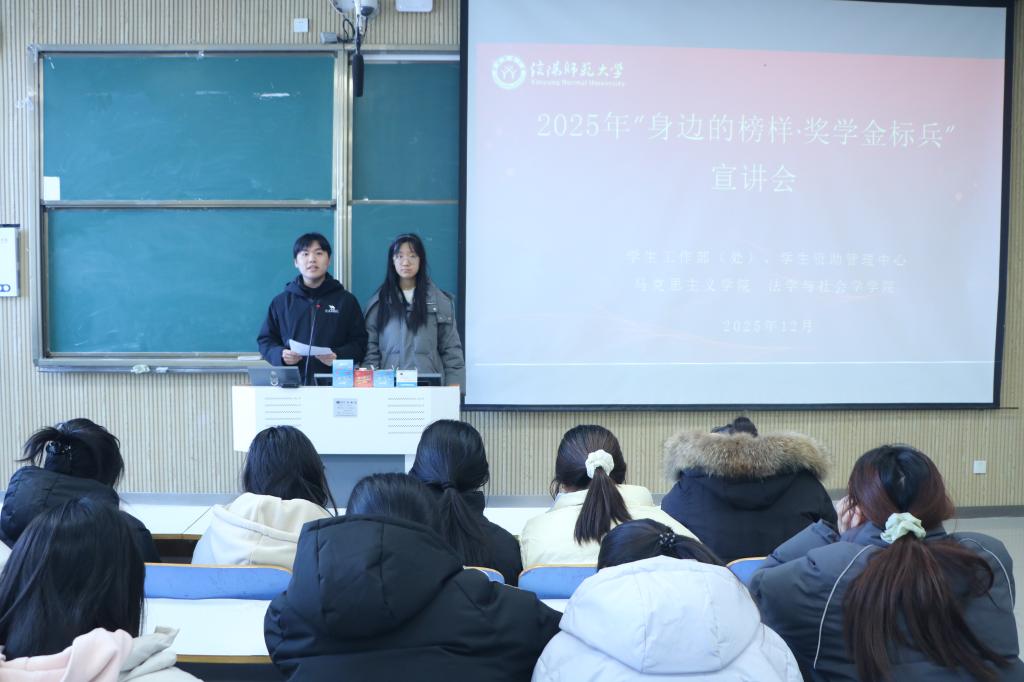 为充分发挥优秀学生的示范引领作用,营造崇尚先进、学习榜样的良好氛围,12月18日中午,必赢官网联合学生工作部、学生资助管理中心及法学与社会学学院于社科楼515教室举办“身边的榜样·奖学金标兵”宣讲会。