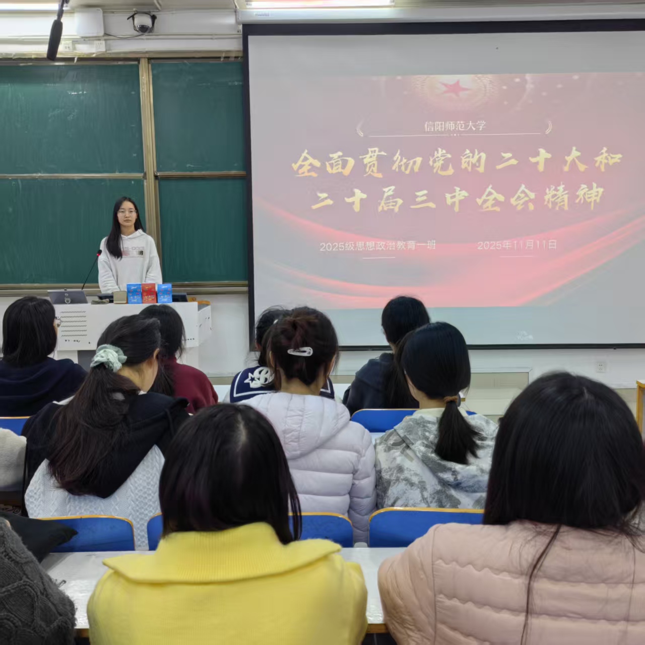 为引导青年学子将思想与行动统一到党中央决策部署上,11月11日下午,必赢76net线路官网思想政治教育一班于社科楼514教室开展“全面贯彻党的二十大和二十届三中全会精神”主题团课。本次团课由团支书宋晓然主持,班级全体同学参加。