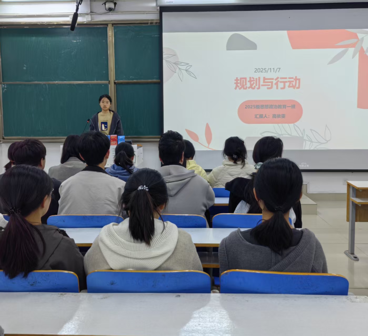 为引导同学们明晰学习方向、掌握科学规划方法,11月7日上午,必赢76net线路官网2025级思想政治教育一班在社科楼514开展“规划筑根基,行动破迷茫”主题班会,本次活动由班长高依雯主持,班级全体同学参加。