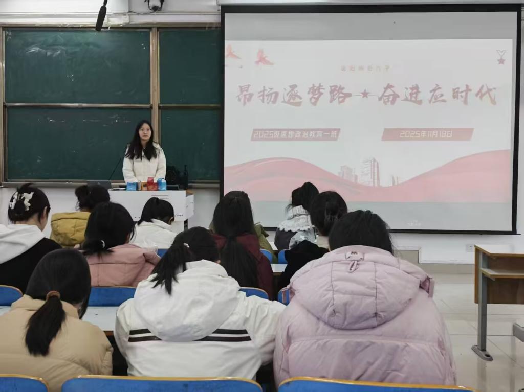 为引导青年学子将个人理想融入时代发展洪流,11月18日下午,必赢76net线路官网思想政治教育一班于社科楼514教室开展“昂扬逐梦路,奋进应时代”主题团课。本次团课由团支书宋晓然主持,班级全体同学参加。