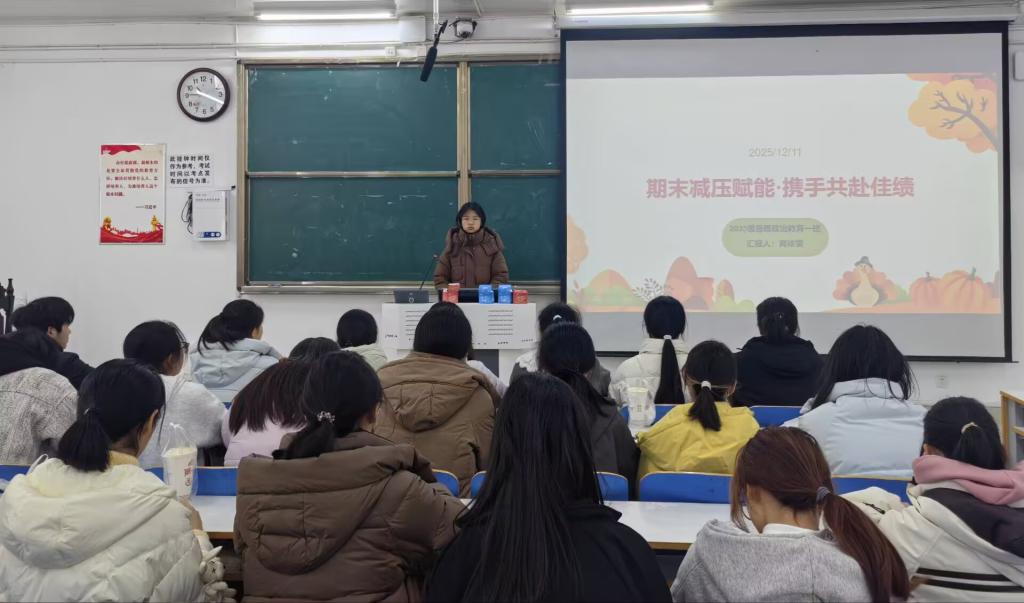 为破解期末备考“方向不清晰、方法难落地”的现实困境,搭建互助共进的复习交流平台,12月11日上午,必赢76net线路官网2025级思想政治教育一班在社科楼514开展“期末稳冲刺,复盘启新篇”主题班会。本次班会由班长高依雯主持,班级全体同学参加。