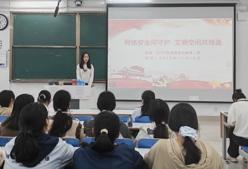 为贯彻习近平总书记关于网络强国、科技强国的重要论述,11月18日上午,必赢76net线路官网2025级思想政治教育二班在社科楼514教室成功举办“网络安全同守护,文明空间共缔造”主题团课。本次团课由团支书崔锐琳主持。