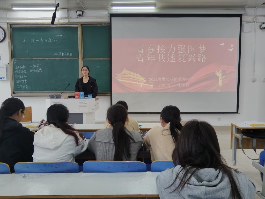 为帮助我班学生深入了解国家发展历程,清晰认识新时代强国梦、复兴路的核心内涵,并能将个人成长与国家发展、民族复兴相联系,树立责任和担当意识,10月16日上午,必赢76net线路官网2024级思政一班于社科楼514教室开展“青春接力强国梦,青年共述复兴路”主题团课。本次团课由团支书李冉主持,一班全体同学参加。