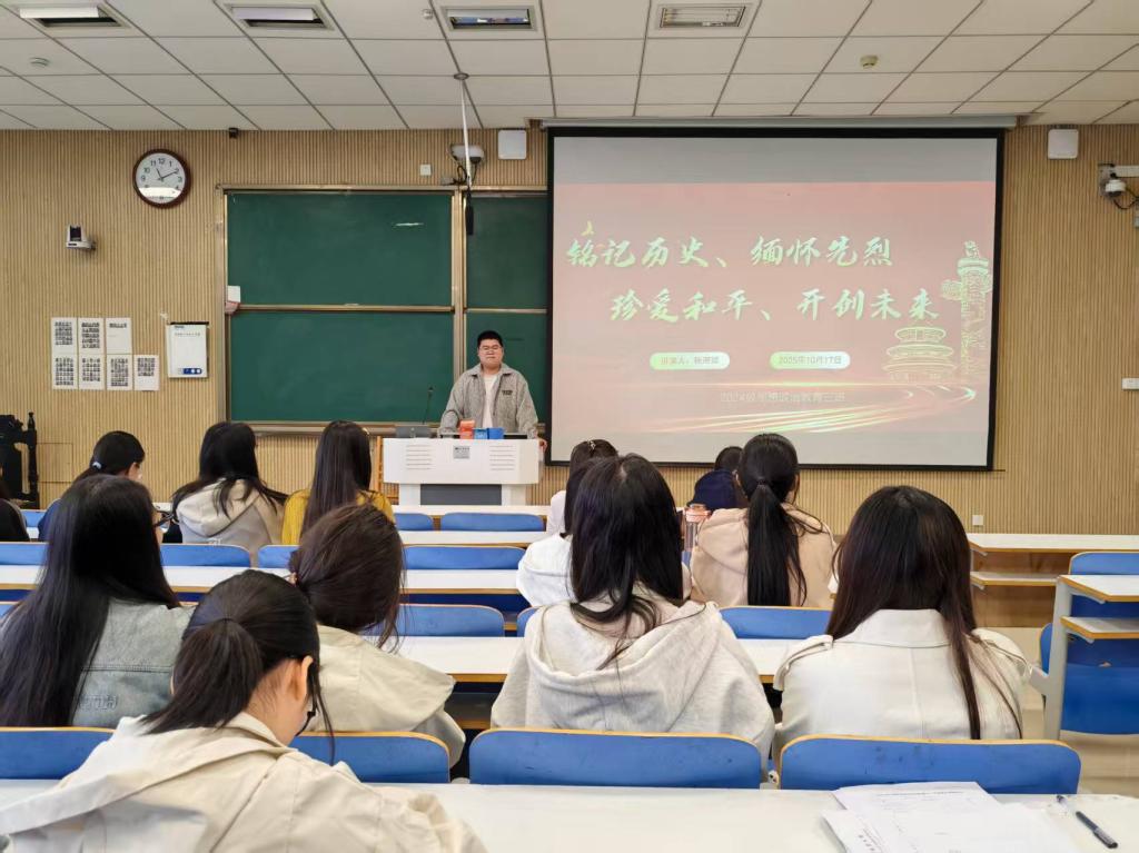 为引导青年学生传承红色基因,厚植爱国情怀,必赢76net线路官网2024级思想政治教育三班于10月17日在社科楼515开展“铭记历史,缅怀先烈”主题团课活动。本次班会由班级团支书杨迎滨主持,全体同学共同参与。